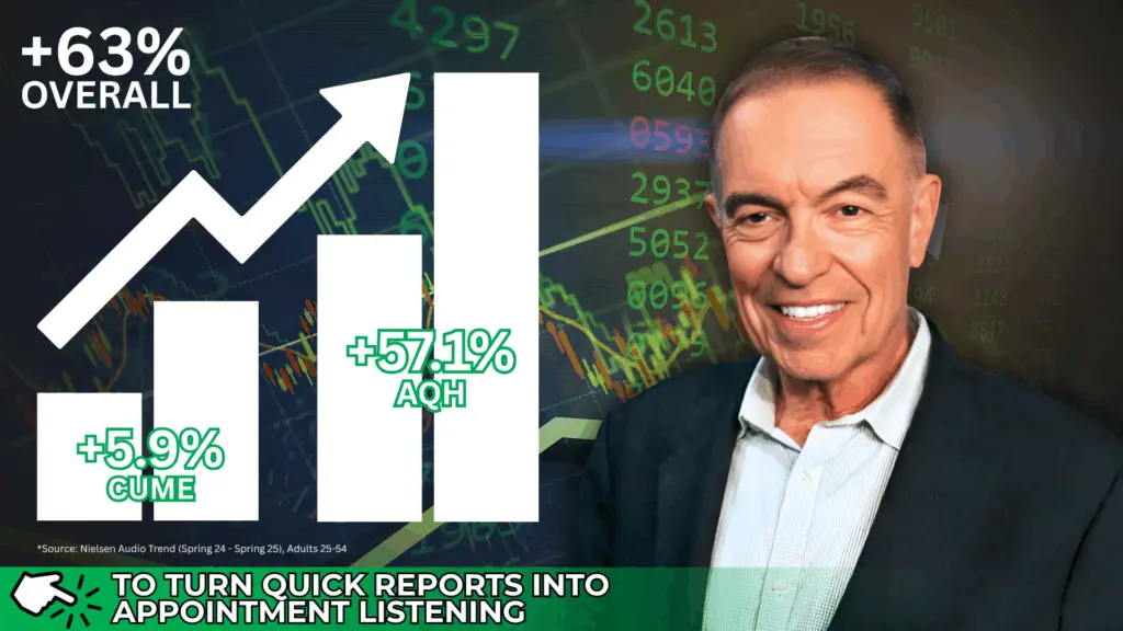 For affiliates, this kind of performance is gold. The AM & PM Market Reports aren’t just quick financial updates, they’re high-impact content blocks that audiences rely on during critical listening windows. A +63% overall jump shows listeners aren’t passively hearing the segment; they’re actively stopping, listening, and absorbing the information. That level of engagement drives credibility for your station, enhances advertiser value, and strengthens your brand as a trusted source for real-world financial insight.